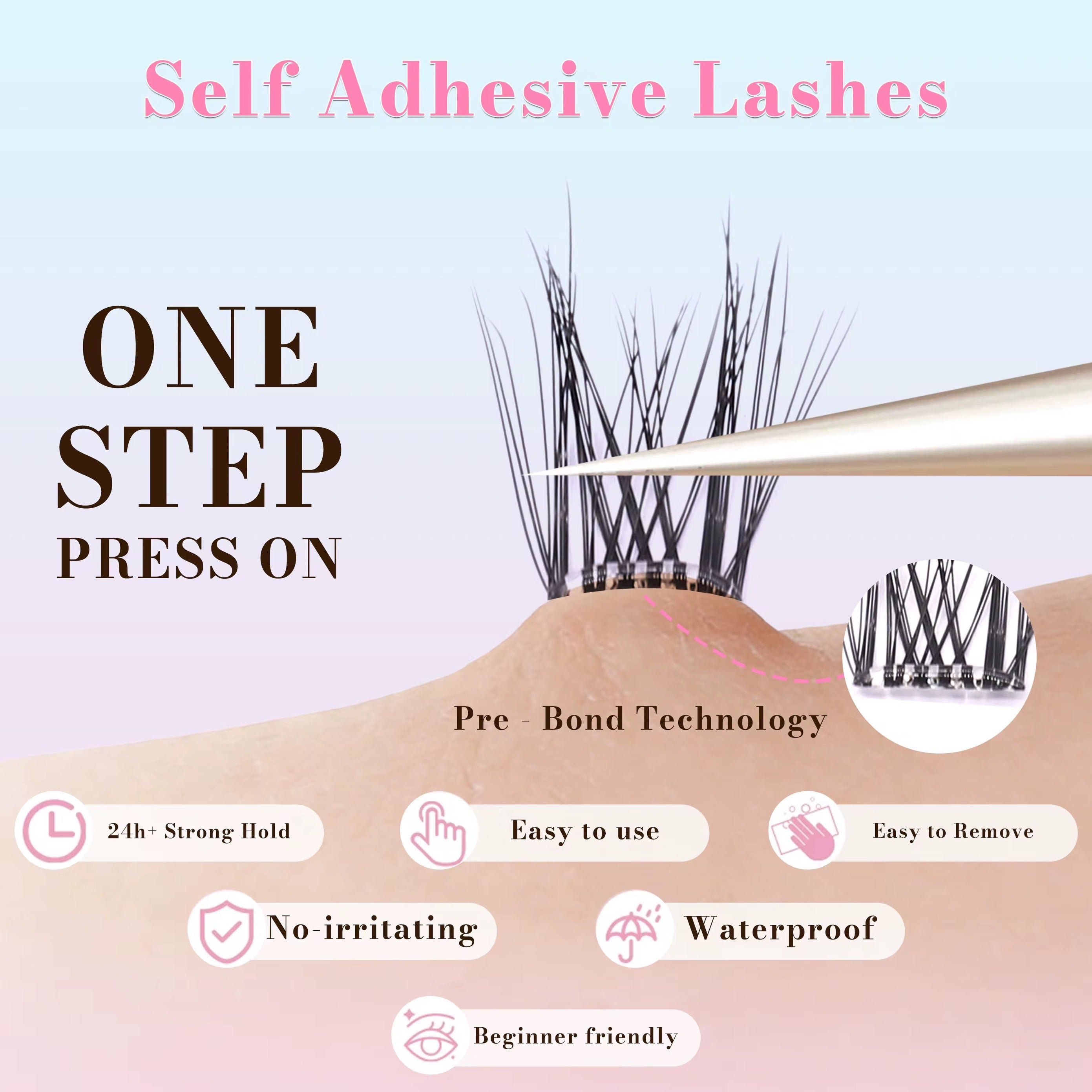 Chaque bouquet de cils DIY est auto-adhésif, ce qui signifie aucune colle nécessaire. Il suffit de les poser et le tour est joué ✨