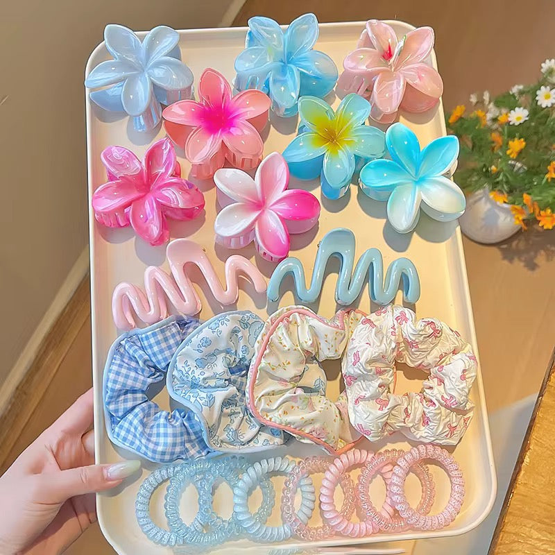 Coloré, pratique et tendance, ce set est une idée cadeau simple et efficace pour accessoiriser toutes les coiffures, à la plage comme en ville.